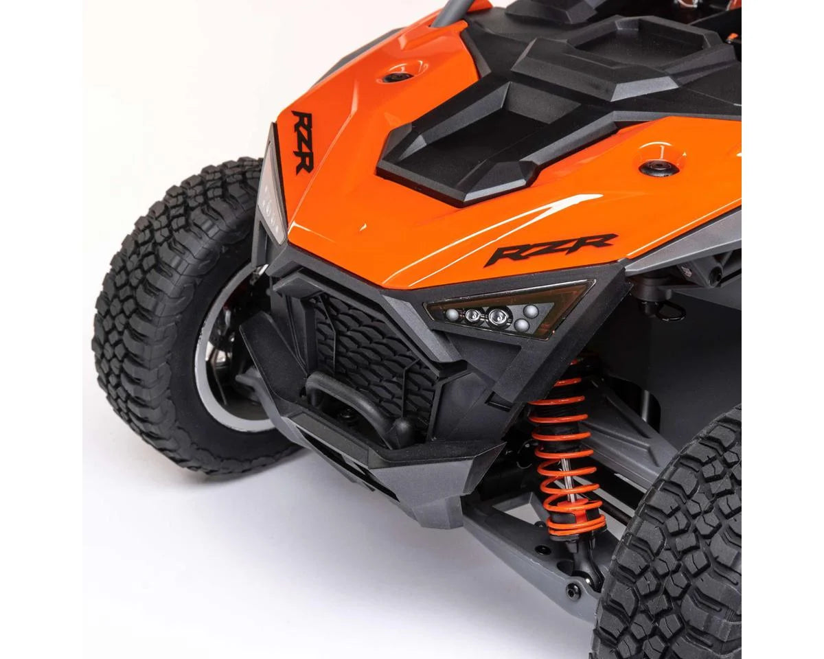 Factory-assembled and ready-to-run, the Losi Polaris RZR Pro R duplicates the looks of the full-size side-by-side with molded body panels, a roll cage, and officially licensed BFGoodrich KM3 tires on Raceline A93 Podium wheels. Losi includes a Spektrum brushless power system that handles a 2S or 3S LiPo battery (not included) and delivers top speeds above 45+ mph.