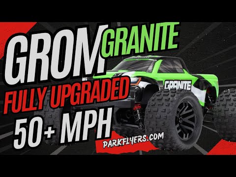 Everything you'll need to the run the GRANITE GROM comes in the box. The truck body is professionally factory-finished in your choice of three brilliant, durable color schemes. GRANITE GROM upgrade parts are available for cranking up its capabilities past eleven. They include a Metal Axle & Wheel Hub Set, Aluminum Shock Set, Adjustable Steering Links, and a two-piece, assembled Oil-Filled Differential Set.