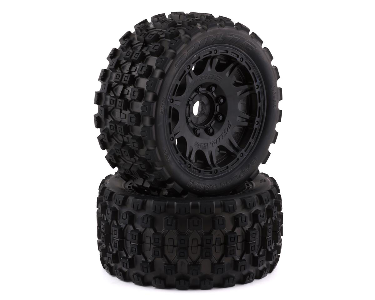 Badlands MX57 5.7" Pre-Mounted 1/6 Monster Truck Tires (Black) (2) w/Raid Wheels