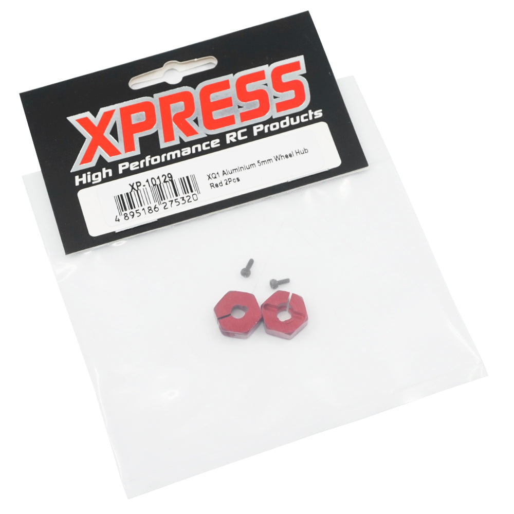 This is Xpress Aluminium 5mm Wheel Hub Red Pair, fits all shafts with 5mm axle. Genuine official replacement part from Xpress.