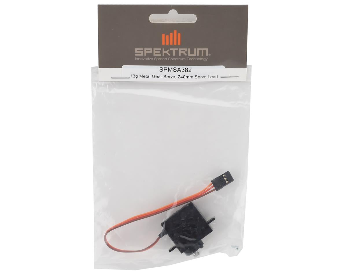 Spektrum 13g Metal Gear Servo with 240mm Servo Lead. Package includes one servo, servo horn, and horn mounting hardware.