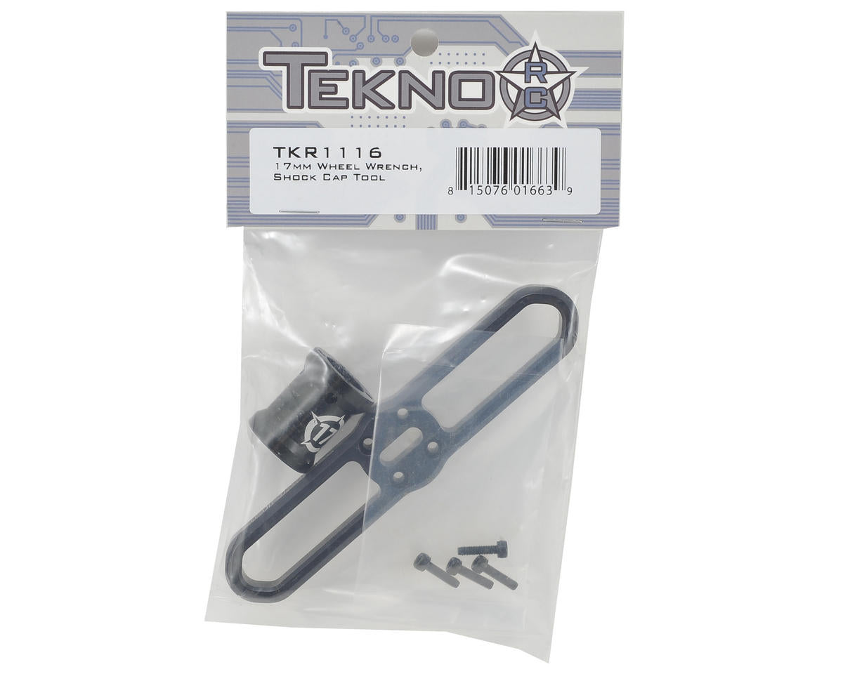 Quickly and comfortably wrench on your buggy/truggy with the Tekno RC 17mm Wheel Wrench and Shock Cap Tool. The Tekno wheel wrench features a unique handle design that is comfortable in the hand and provides more leverage versus traditional designs. This is accomplished by a longer handle that has ergonomic chamfering throughout for comfort. The wrench also doubles as a shock tool to help aid in the removal and installation of Tekno RC shock caps. Just flip the wrench over and the oval slot on the top fits perfectly over the shock mounting boss on Tekno caps. Additionally, laser etched markings and a two tone anodized finish help make the tool look good and easy to spot among the many other wheel wrenches on the market.