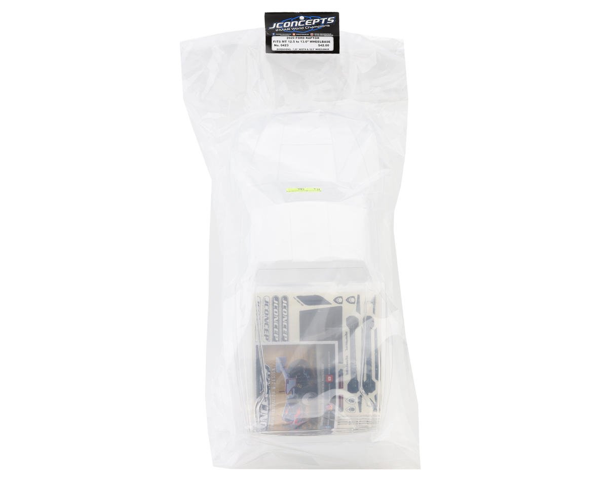 The clear JConcepts body shell includes a Ford Raptor decal sheet, window mask, and instructions. The genuine body shell is backed with JConcepts customer support and racing heritage.