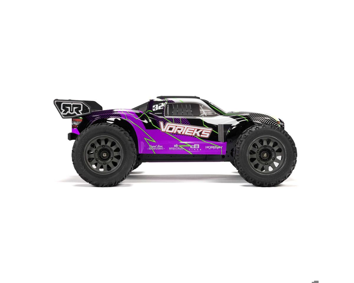 The Arrma Vorteks 2WD MEGA 550 RTR comes fully assembled and ready to hit the ground running, complete with everything you need for a thrilling RC experience. The package includes a pre-painted stadium truck body, giving the Vorteks a sleek, sporty appearance, while the rugged all-terrain tires and tough multi-spoke wheels provide exceptional grip and durability. To get you started right away, Arrma includes a high-capacity Spektrum Smart 7-cell 3300mAh NiMH battery and a Spektrum S120 USB-C Smart Charger, ensuring fast charge times and extended run times. With the included 4 "AA" transmitter batteries, this ready-to-run truck is truly ready to unleash its full potential right out of the box.