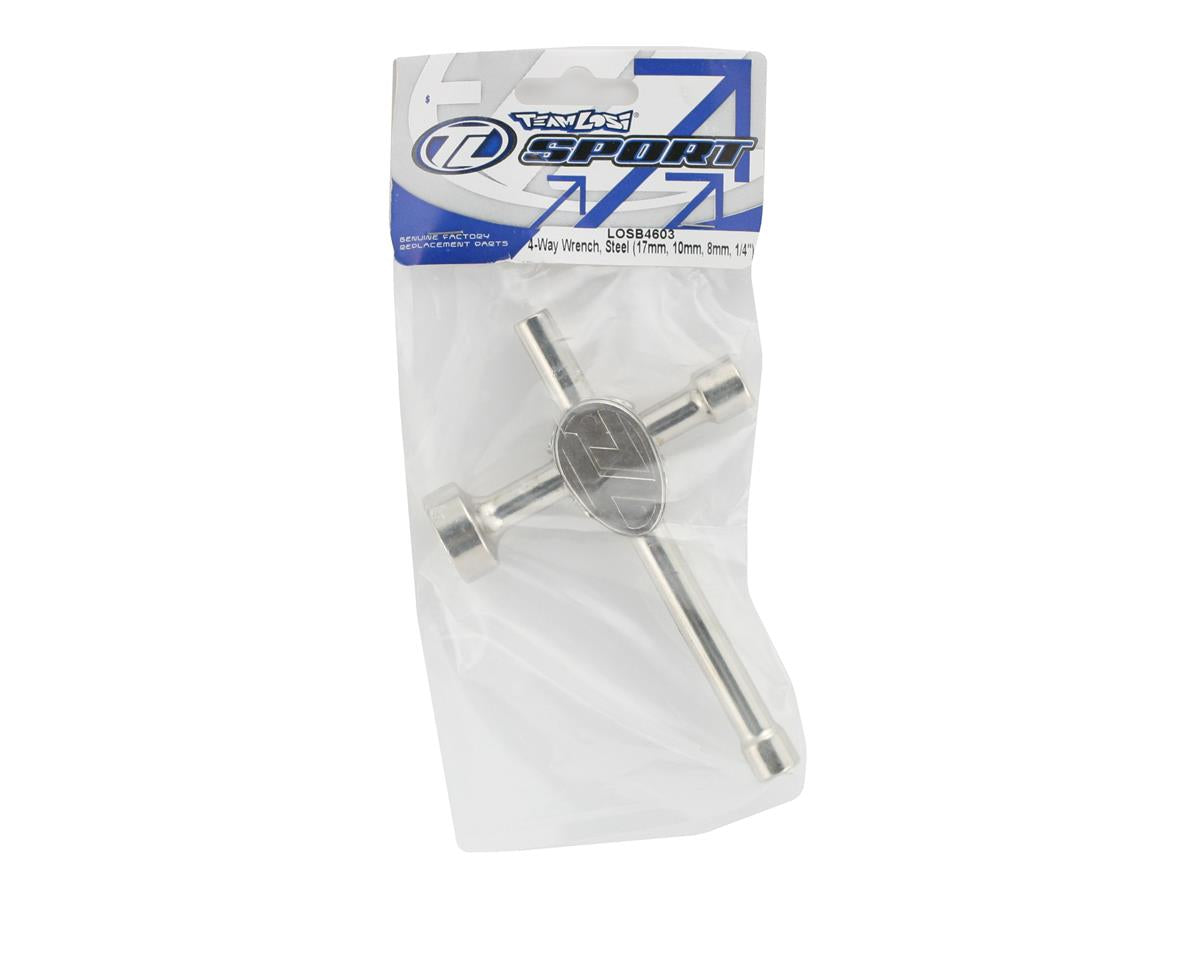 This is a Losi 4-Way Steel 17mm, 10mm, 8mm, 1/4" Wrench.