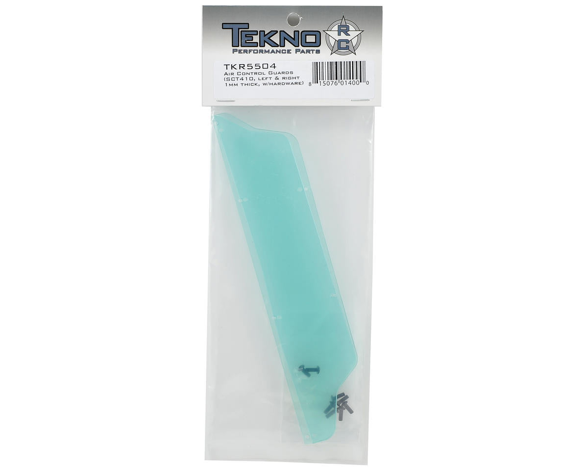 This is an optional Tekno RC Air Control Guard Set, and is intended for use with the Tekno RC SCT410 4wd Short Course Truck. These will help make your vehicle the perfect racing machine! These mud guards will not only help protect your vehicle from mud and dirt, but they also will increase high speed stability, and reduce the "dirty air" that causes your truck to parachute. Laser cut from high quality lexan, these are a great addition to your SCT410. Includes the hardware needed for attachment, the Air Control Guards are a must have for your SCT410.