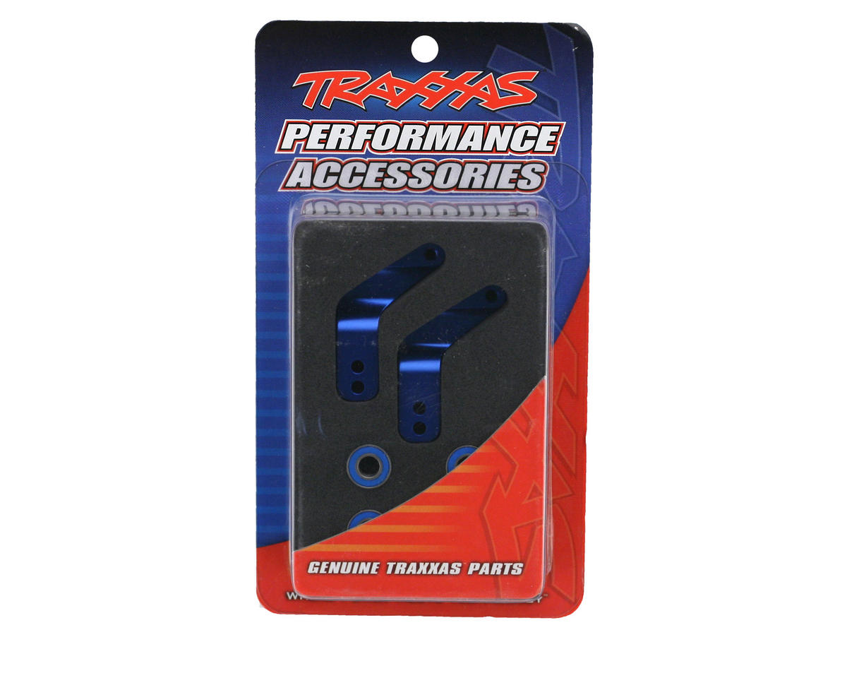 This is a set of two optional blue aluminum stub axle carriers with bearings from Traxxas. These stub axle carriers mount to the rear control arms, and support the rear axles.