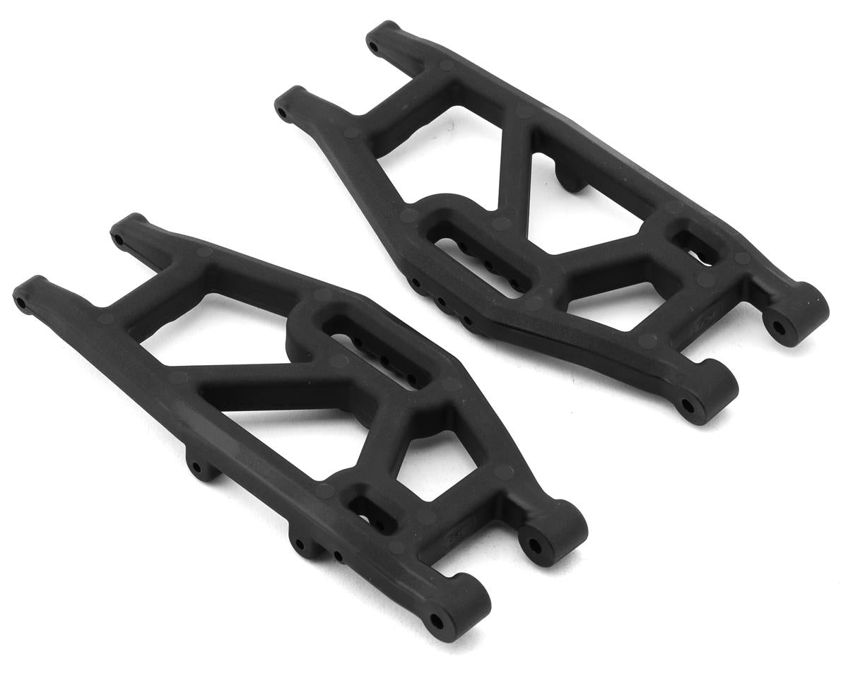 These are the RPM Arrma Kraton/Outcast 4S BLX V2 Rear A-Arms. Each pair of RPM A-arms is molded in a blend of nearly indestructible nylons and manufactured in the USA. These A-arms are designed to withstand even the toughest conditions, so you can push your vehicle to the limit without worrying about breakage. Performance has been improved by tightening the tolerances of the A-arm to create much smoother, more consistent suspension movement for reliable camber, caster, and toe angle settings. The suspension geometry is set to stock settings, which makes installing a set of RPM A-arms a simple swap with very little needed to be done to get back on the track.