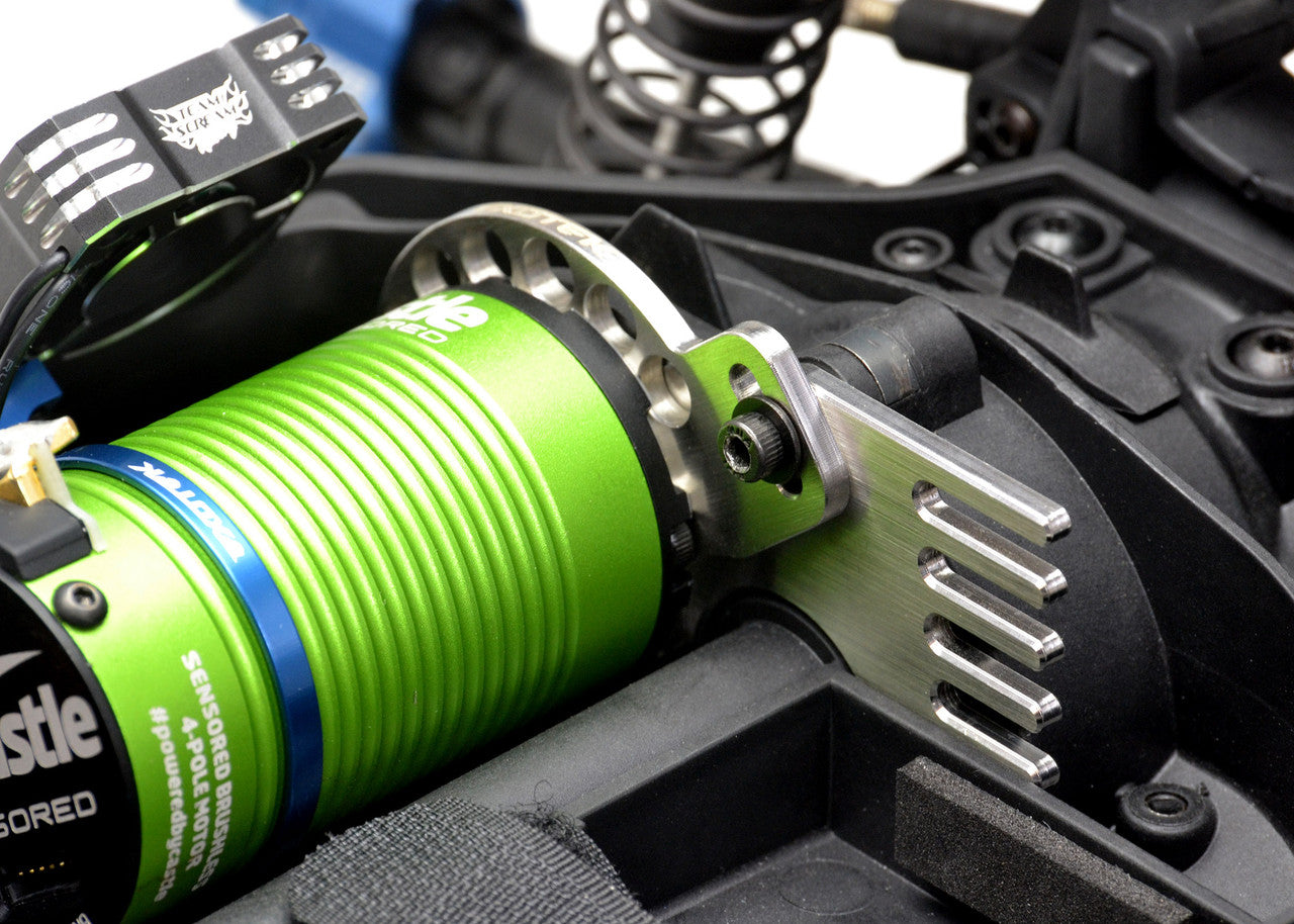 A must have for your Associated MT10 and PRO4 SC10 to help eliminate the flex in the stock motor plates that causes premature wear to your spur gear.