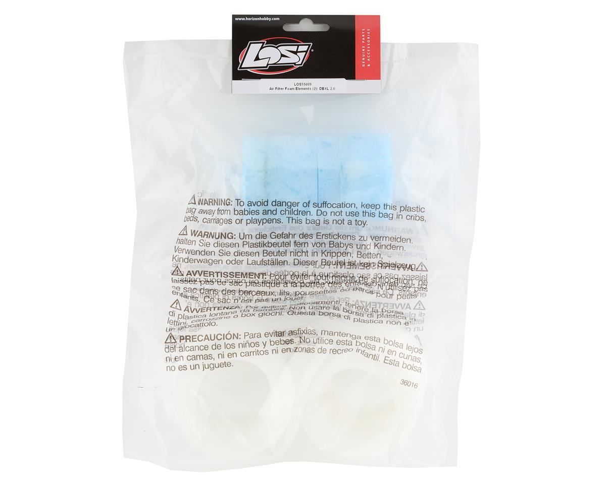 Losi DBXL 2.0 Air Filter Foam Element. Package includes two replacement pre-oiled inner filters, and two replacement dry outer filters.