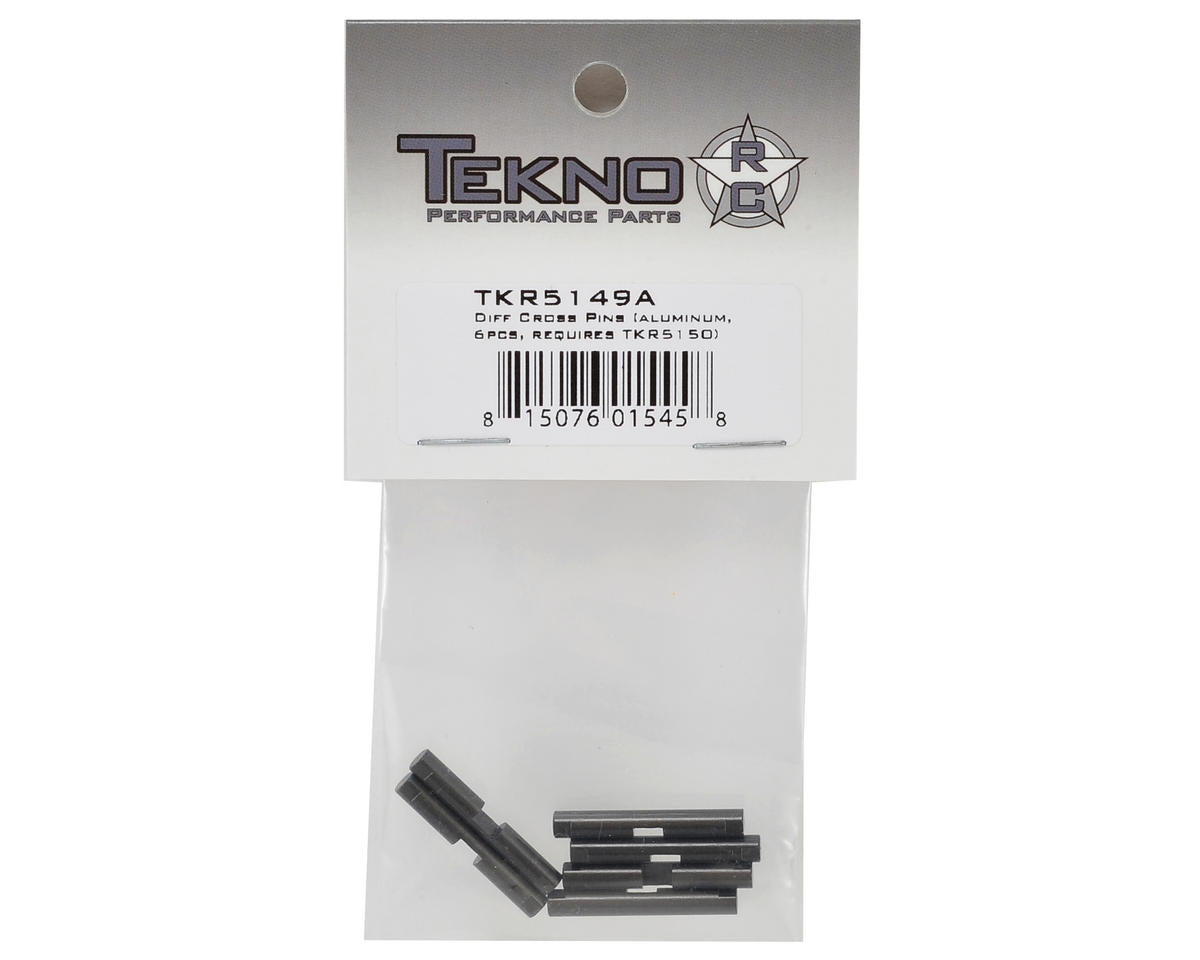 This is a pack of six optional Tekno RC Aluminum Differential Cross Pins intended for use with the TKR5150. These pins fit in the same differential case as the EB48 and SCT410. They do require the new differential gears TKR5150 to be compatible in the EB48. These new Pins are bigger in diameter, making the ends of the Pins flat so there is more contact area in the differential case. This helps eliminate wear on the case and produces a smoother, longer lasting differential.