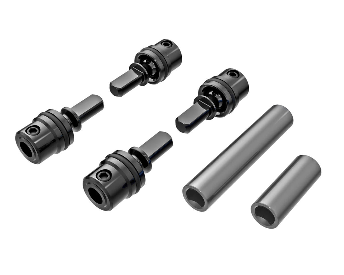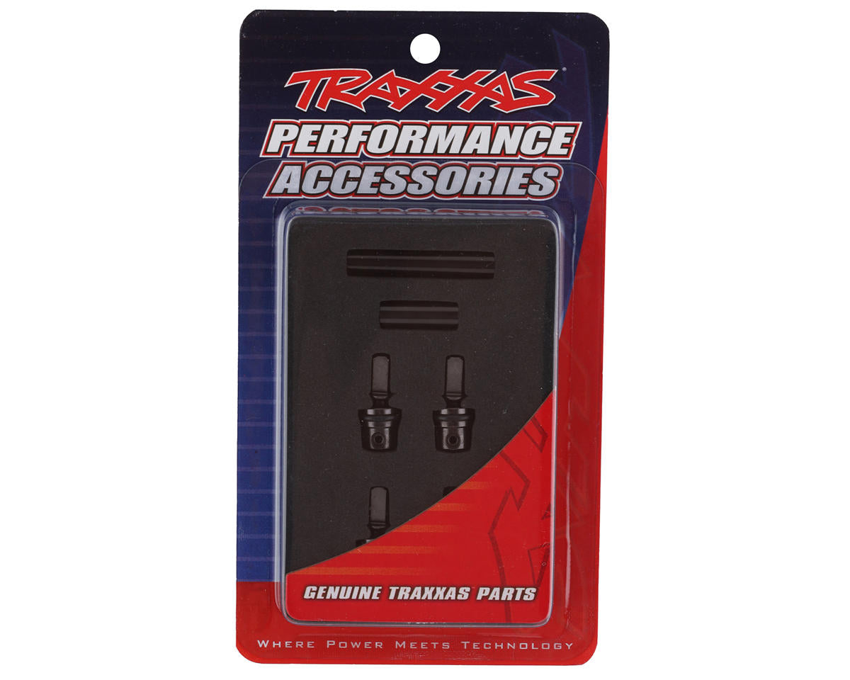 Traxxas TRX-4M Metal Driveshafts. These optional driveshafts for the Traxxas TRX-4M are built to handle the most demanding conditions and are hard anodized to look amazing! Using steel drive hubs combined with lightweight aluminum shafts these offer the best of both worlds with incredible strength without adding unnecessary rotating mass. Available in multiple colors these are an excellent upgrade for your build. Package includes front and rear steel drive hubs, aluminum center shafts, and 1.6x7mm drive pins.