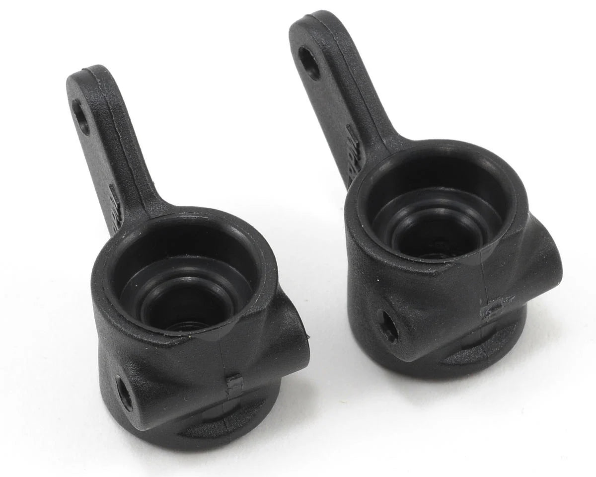RPM Traxxas Steering Blocks are the perfect solution for worn bushings and weak 5x8mm bearings. Give your electric the same bearing the nitro trucks come stock with - 5x11mm! The oversize bearings have higher load ratings than a 5x8mm bearing and will significantly increase the time between maintenance. In addition, these oversized bearing carriers are so strong, RPM guarantee that they won't ever break! When used in conjunction with the RPM Rear Bearing Carriers (RPM80382), you'll never have to worry about worn-out bushings or blown wheel bearings again!
