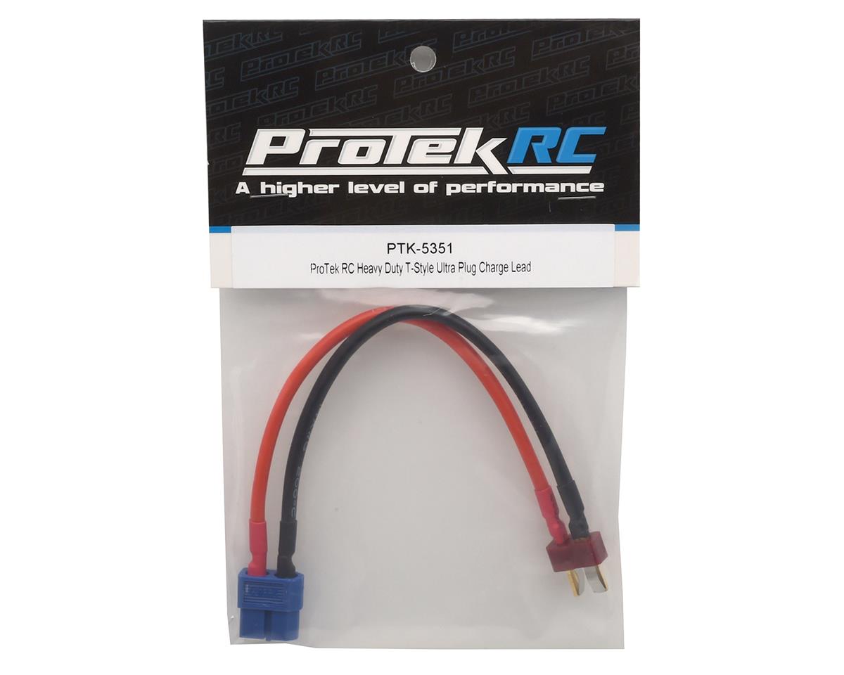 The ProTek R/C Heavy Duty T-Style Charge Lead Adapter features a "male" t-plug, connected to a female XT60. Thanks to the 6 inch long 14awg wire, this adapter can be used for heavy duty charging and can handle charge rates more than 20 amps. This adapter can also be used for ESC to battery connections in some applications, allowing you to connect your T-style plug equipped battery to an ESC with an XT60.