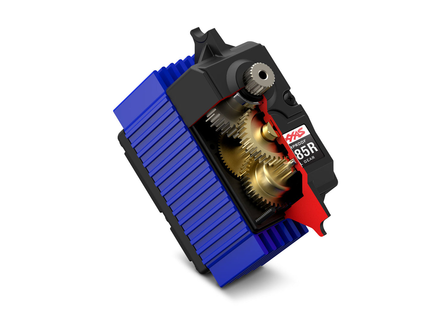 The High Torque Maxx Servo is the ultimate steering upgrade for your X-Maxx®, XRT®, or Maxx®. With a staggering 650 ounce-inches of torque and full steel gears, the High Torque Maxx Servo delivers total steering authority on even the largest Sledgehammer® tires. The case features an anodized aluminum center section with cooling fins and ball bearings for increased precision. The servo includes a stiffer servo saver spring and steel steering linkage for maximum steering authority and control during high speed driving. Servo requires Maxx® mount found in Maxx, X-Maxx®, and XRT®. Does not fit other vehicles.