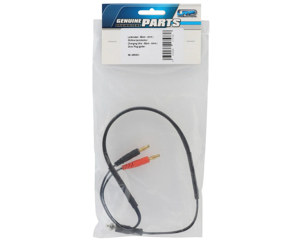 LRP Universal Charging Lead. This universal charging lead is designed for dependable performance across various applications. With a 500mm length, this charge lead features high-quality 4mm gold connectors on one end and a glow plug ignitor on the other, making it compatible with a range of battery setups. For added protection and consistent performance, the charging lead is equipped with a protective mesh and shrink tubing on both ends.