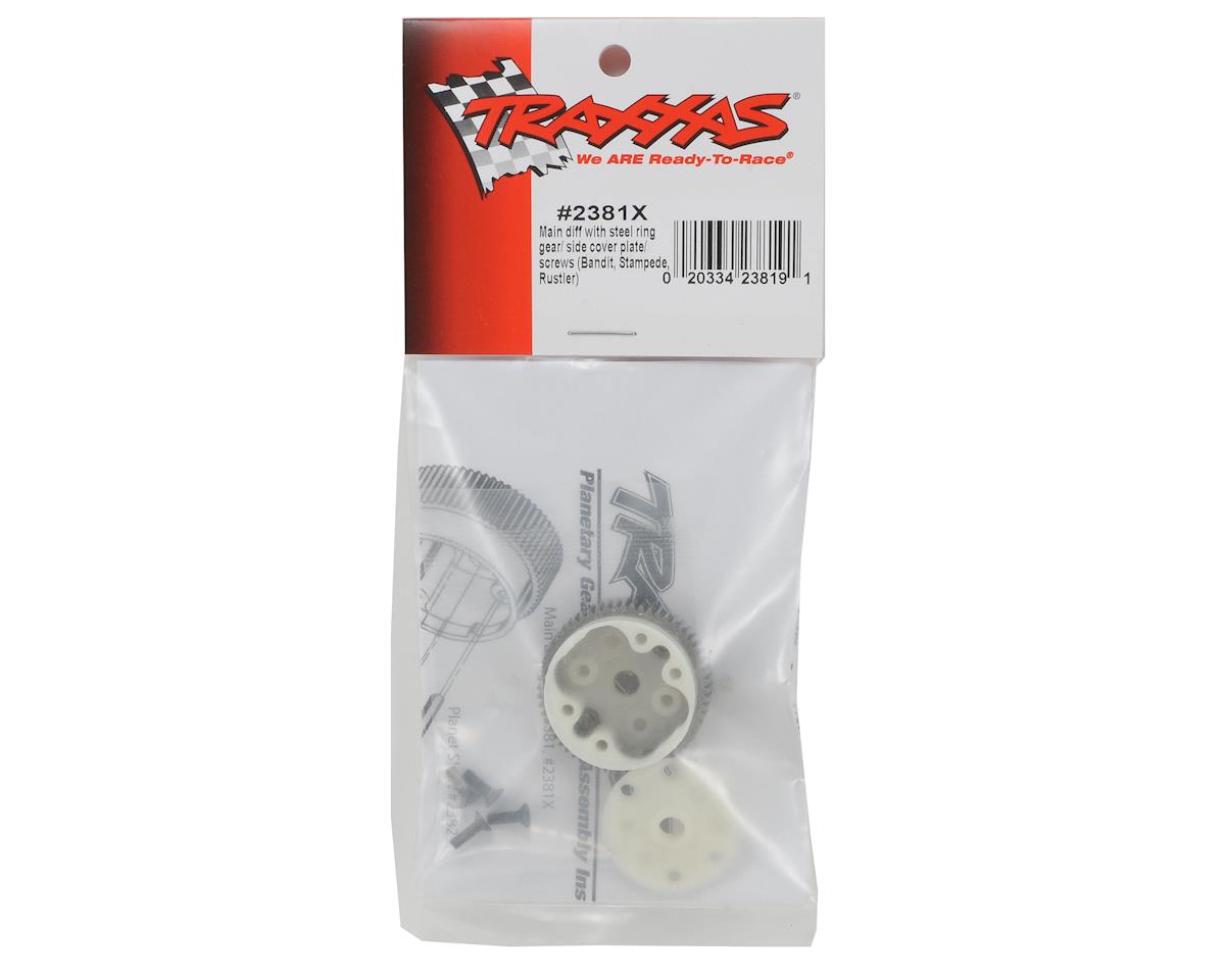 This is a replacement Traxxas Main Differential Case, with a Steel Ring Gear, and is intended for use with the Traxxas Bandit, Stampede, Rustler and Slash 1/10 electric vehicles.