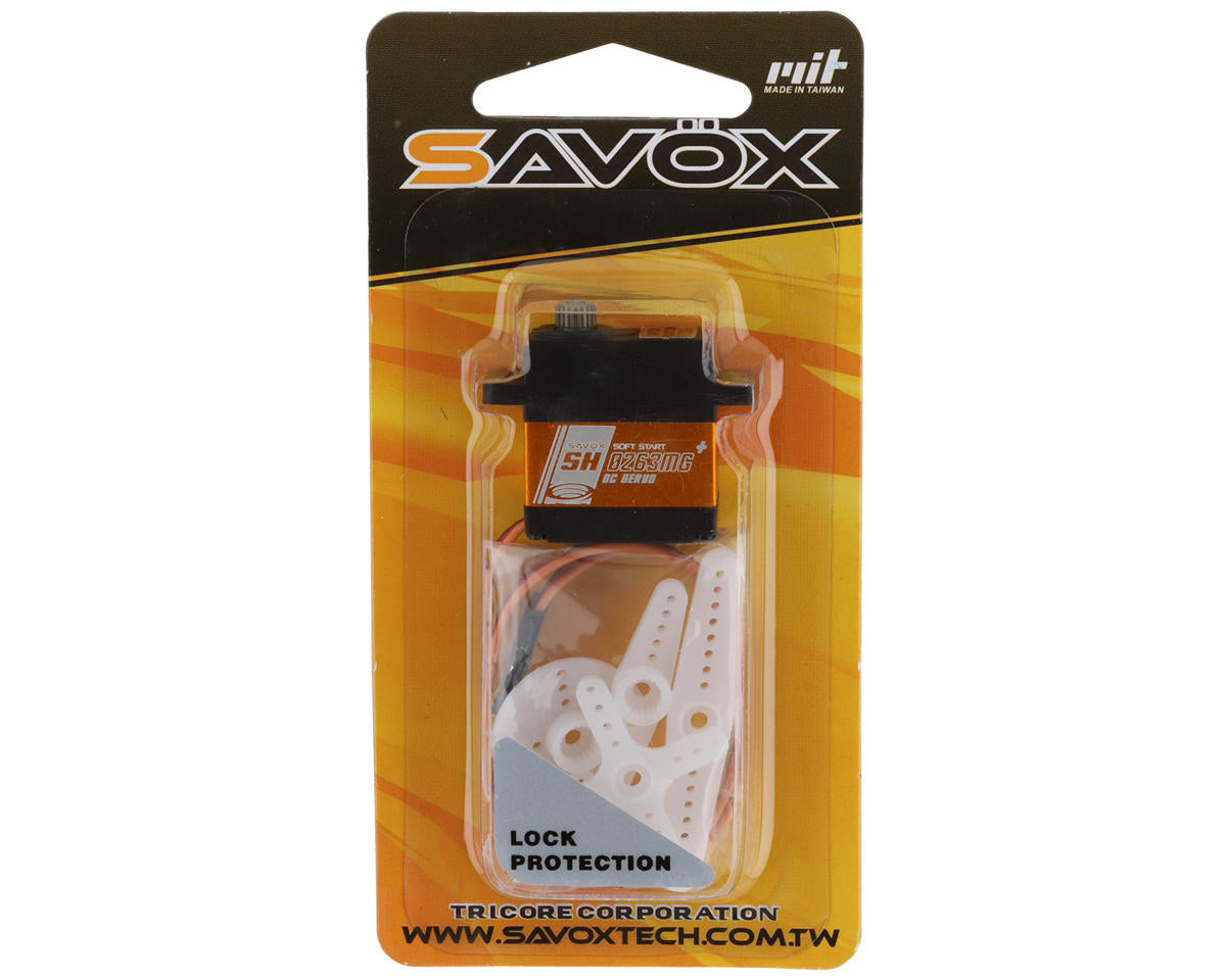 The Savox SH-0263MGP Metal Gear Digital Micro Servo is quick and built tough. It's small size and superb overall performance makes this servo ideal for applications such as 450 size helicopters.