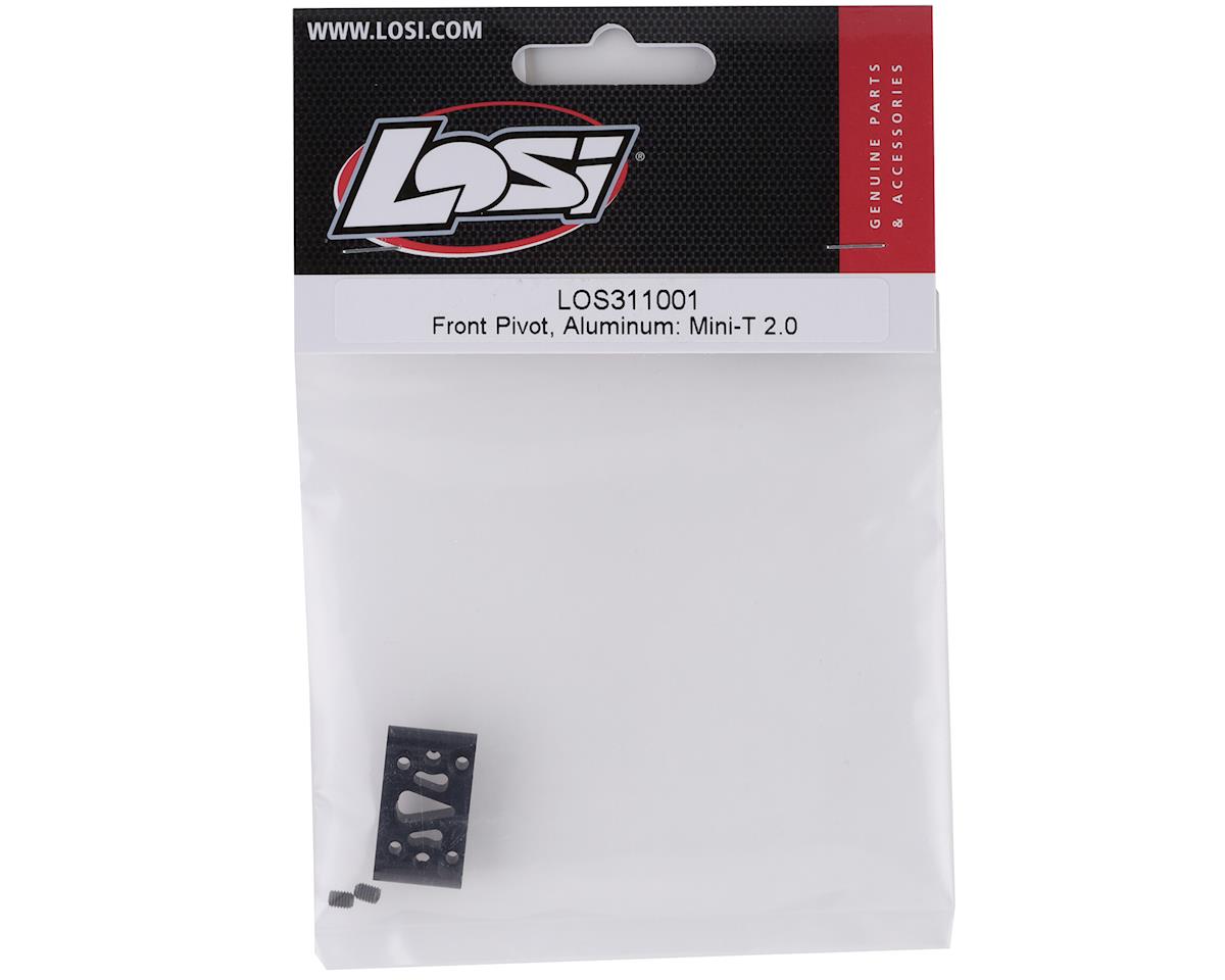 The Losi Mini-T 2.0 Aluminum Front Pivot is a machined aluminum option for the Mini-T 2.0 trucks. CNC machined, and anodized black with silver chamferred edges, this part will add strength and a custom look to your Mini T 2.0. Package includes one front bulkhead and two set screws.