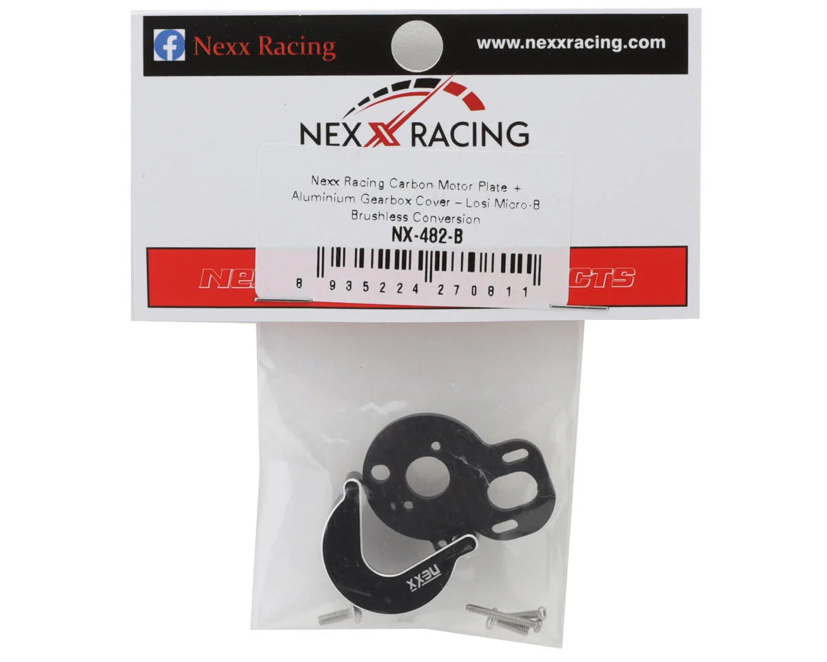 NEXX Racing Losi Micro-B Carbon Motor Plate & Aluminium Gearbox Cover Set (Black) (Brushless Conversion)