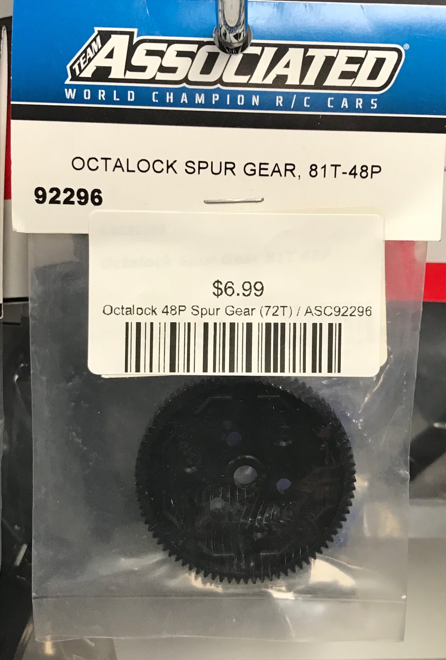 The Team Associated Octalock 48P Spur Gear, launched with the RC10B74.1 buggy, introduces the latest spur gear design from Team Associated. In addition to the octagon shape, each pad has eight locking tabs that engage with the spur gear for maximum security and longevity.
