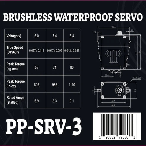 (professionals choice!). Super High Torque - True 80KG! Ultra fast under load Waterproof, Shockproof, Brushless & Metal Gears + Metal shaft. Extremely precise, High Voltage 6V-8.4V Efficient heat sink aluminum case for better cooling.