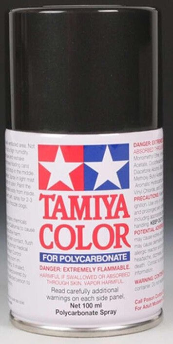 This is a 100ml can of Tamiya PS-23 Gun Metal Lexan Spray Paint. These spray paints were developed especially for decorating transparent polycarbonate bodies used in R/C car modeling. Each can contains 100ml of paint, which is the appropriate amount for finishing one 1/10 scale model.