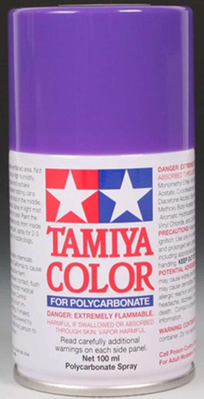This is a 100ml can of Tamiya PS-10 Purple Lexan Spray Paint. These spray paints were developed especially for decorating transparent polycarbonate bodies used in R/C car modeling. Each can contains 100ml of paint, which is the appropriate amount for finishing one 1/10 scale model.