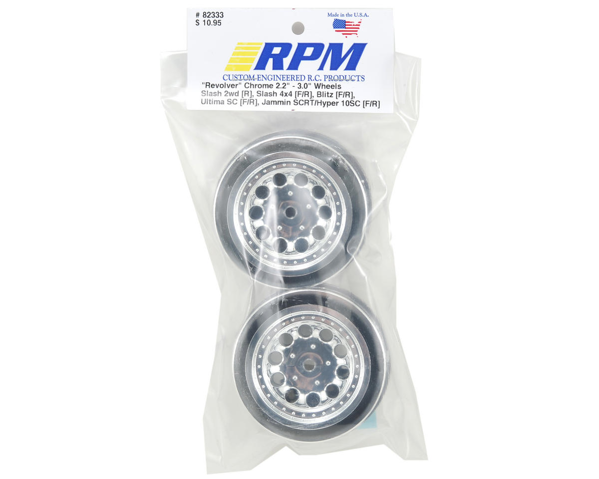 RPM Revolver Short Course wheels are sold in pairs (spline drive adapters are included in each package), available in black or chrome and backed by RPM's industry-leading breakage warranty for unsurpassed strength and durability.