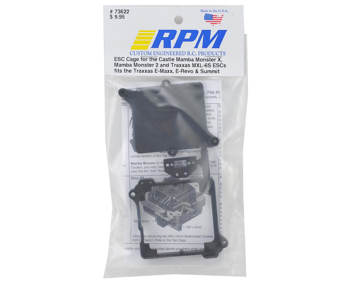 - The RPM ESC Cage for the Mamba Monster 2 & Mamba Monster X series ESCs works with Castle #010-0108-00, # 010-0108-01, # 010-0108-02, # 010-0145-00, # 010-0145-01 & # 010-0145-02 as well as the Traxxas MXL-6S ESC #3377.