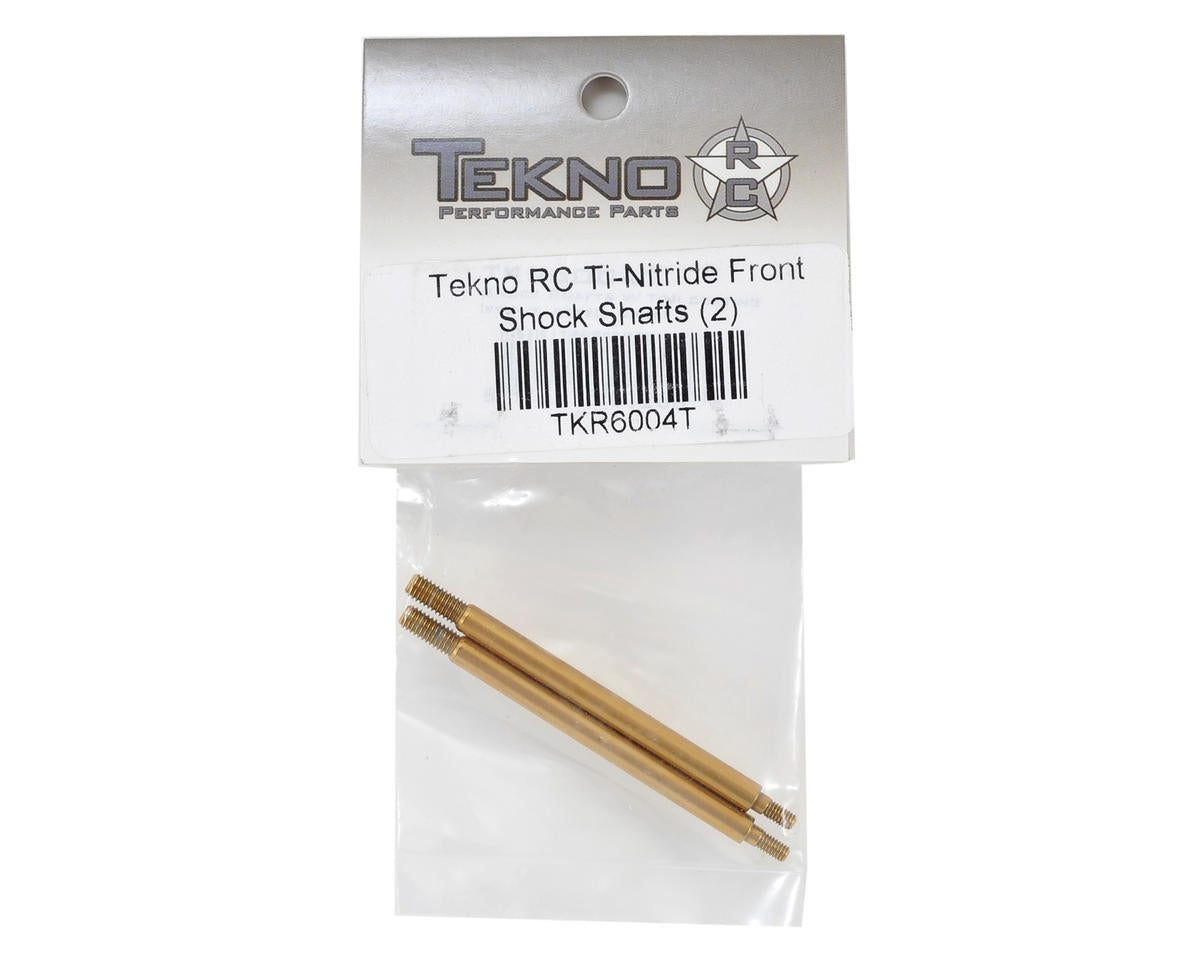 This is a pack of two optional Tekno RC Ti-Nitride Front Shock Shafts. These updated shafts feature the latest Titanium Nitride coating to ensure the smoothest operation in any condition. It also provides improved strength and surface properties that allow the shaft to travel with less friction through the shock unit. The result is improved jump landing, bump handling, and improved consistency throughout a race.