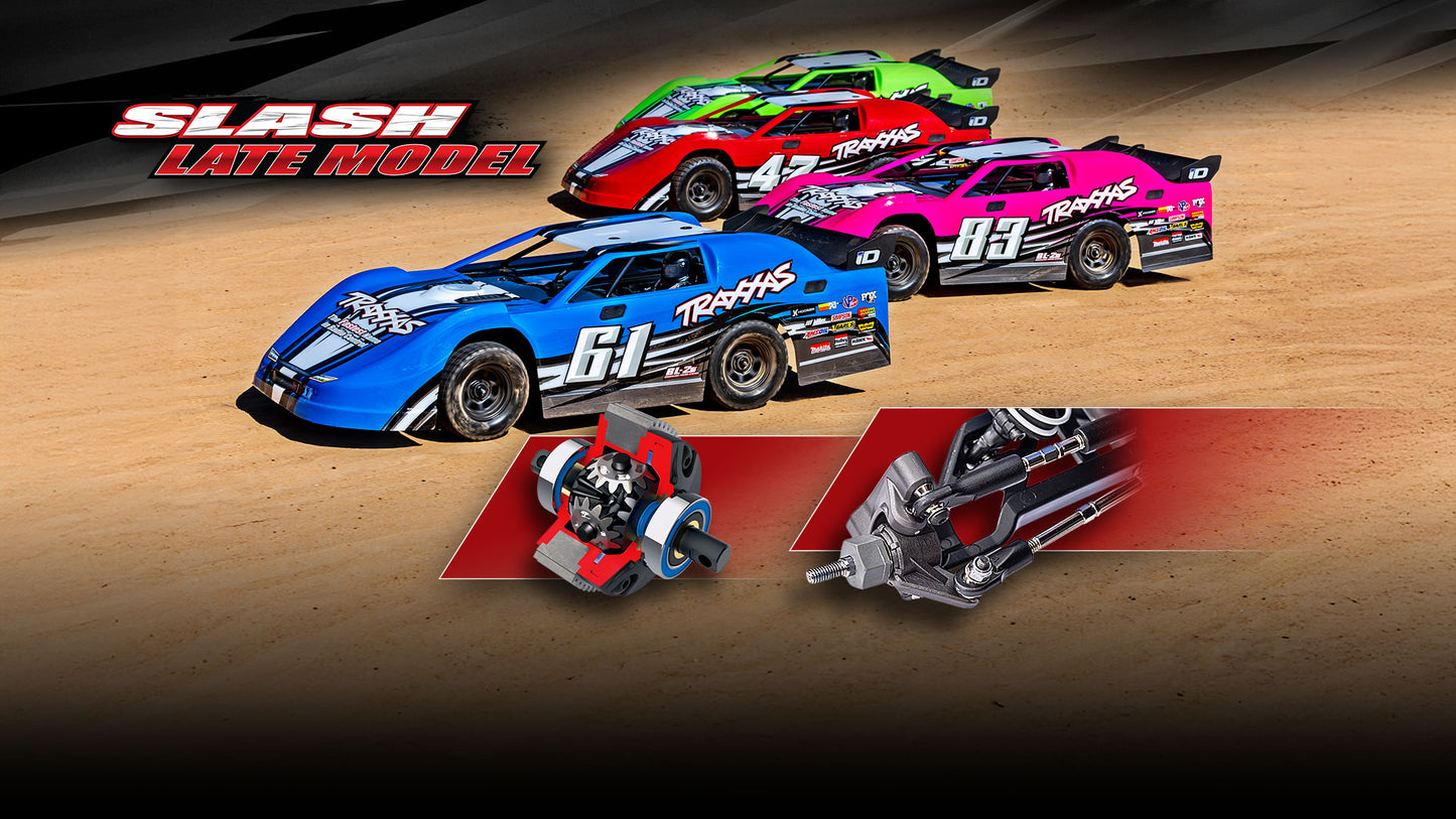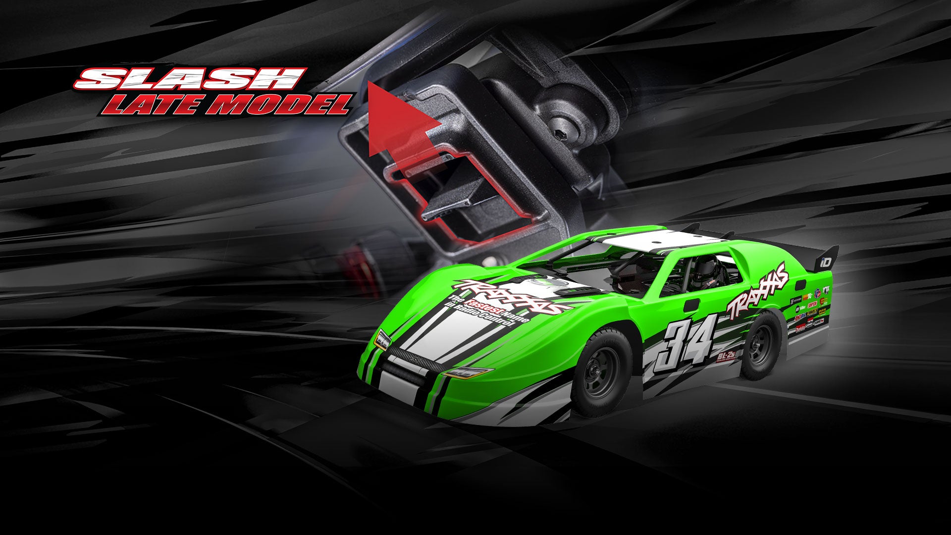 MODEL 104354-74: Slash Late Model: 1/10 2WD dirt oval race car, fully-assembled, waterproof electronics, Ready-To-Race®, with TQ™ 2.4 GHz 2-channel radio system, BL-2s™ brushless power system, and clipless painted body.