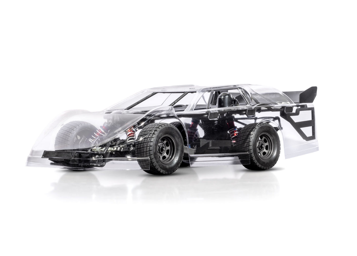 Hit the oval track in style with the Traxxas Slash® Late Model unassembled body kit. The Late Model body kit incorporates Traxxas’ unique clipless mounting system to snap onto the Slash Modified chassis with the included body support and clipless latches. The Late Model clear body comes untrimmed for maximum customization. Use the included decal sheets to create your own custom design with Traxxas ProGraphix® paint. Traxxas makes it easy and fun to enjoy Late Model oval-track racing action with your Slash Modified chassis.
