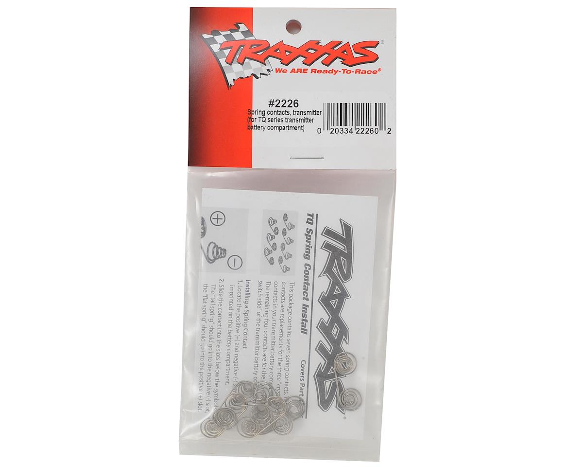 This is a pack of seven transmitter spring contacts for the Traxxas TQ series of transmitters. Three contacts are replacements for the the "crystal side" contacts in your transmitter battery compartment. The remaining four contacts are for the "on/off switch side" of the transmitter battery compartment.