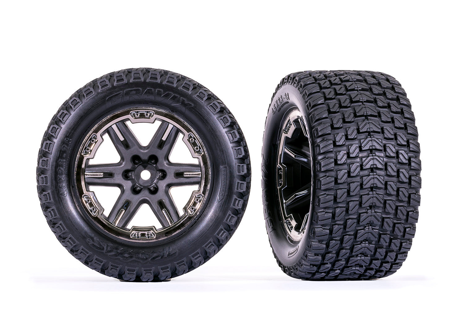 Tires & wheels, assembled, glued (2.8") (RXT charcoal gray & black chrome wheels, Gravix™ tires, foam inserts) (4WD electric front/rear, 2WD electric front only) (2) (TSM rated)