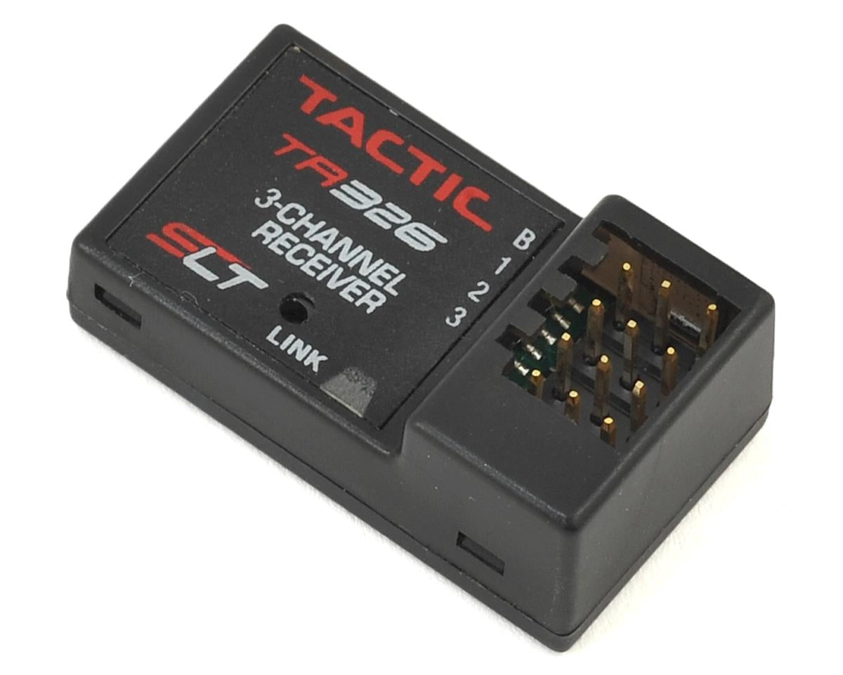 The Tactic TR326 3-Channel 2.4GHz SLT HV Receiver is recommended for use with the Arrma Nero and Tactic TTX300C 2.4GHz 3-Channel SLT Transmitter (TACJ0301).
