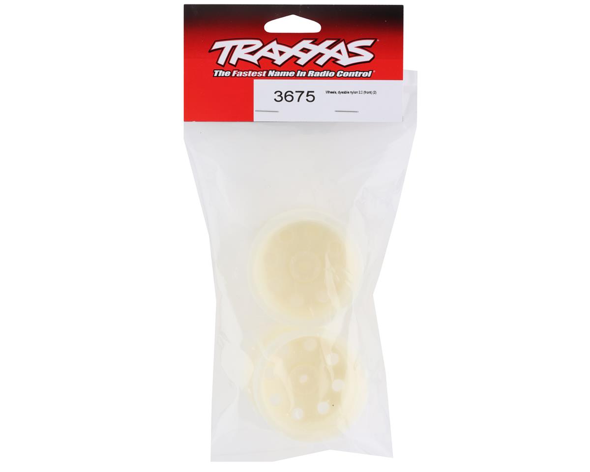 This is a set of two Traxxas Front 2.2" Dyeable Wheels. Dress up the look of your Rustler with these durable nylon wheels. These nylon wheels are white, but are dyeable, allowing you to pick the color you prefer.