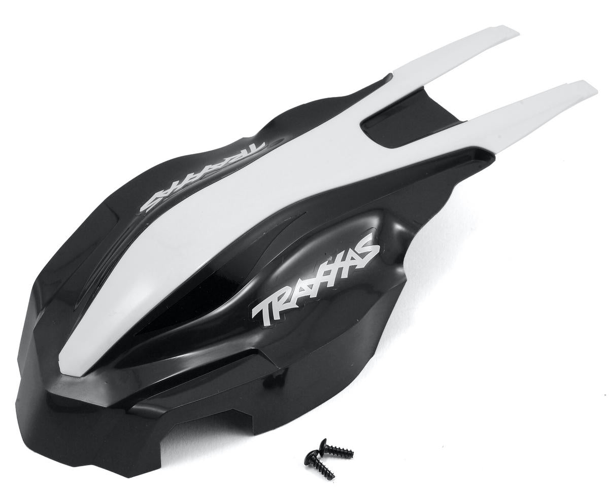 Traxxas Aton Canopy Front. This is the replacement black/white canopy. Package includes factory detail canopy and installation hardware.