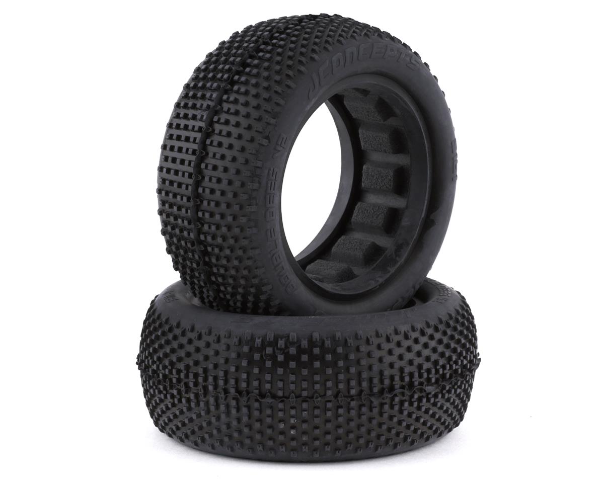 The JConcepts Double Dee's V2 2.2" 4WD 1/10 Front Buggy Tires have been improved across the board. The tires carcass was revised for a stout feel in straight-line tracking. A slightly taller sidewall provides more cushion for bumps and ruts. The inner webbing has been redesigned to an overlapping "X" pattern to provide support at high-speed. The tread layout features dual square pin’s surrounding the center structure. The outside of the pins has been clipped at an angle to give a smooth driving feeling. To fill in the rest of the tire, the lugs have been spread in a staggered pattern. The Double Dee's V2 are a great option for a variety of track conditions. Package includes two 4WD front tires and two dirt-tech closed cell foam inserts.