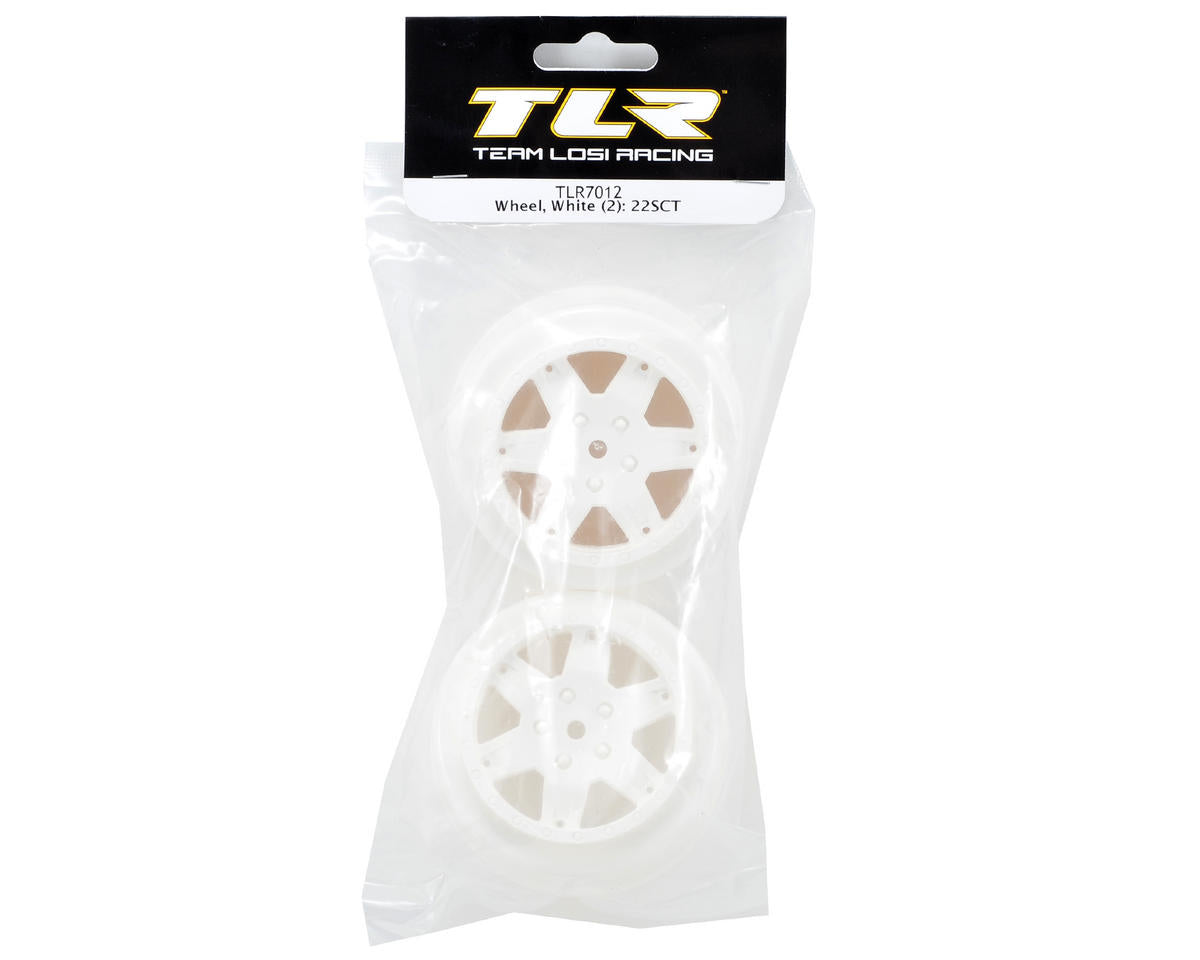 This is a pack of two optional Team Losi Racing White Wheels, and are intended for use with the Team Losi Racing 22SCT 1/10 scale short course truck.