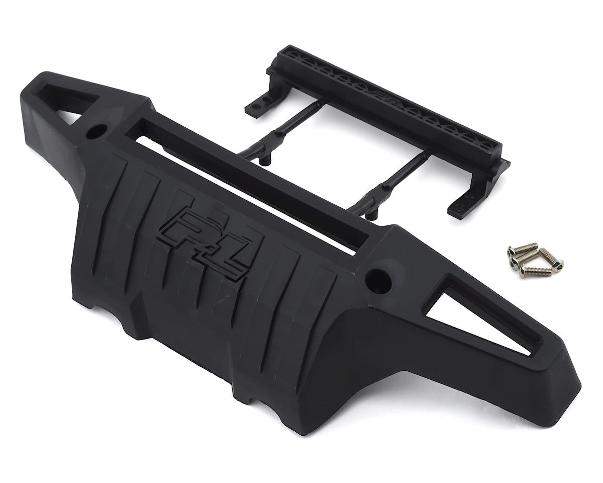 This is the Pro-Line X-MAXX PRO-Armor Front Bumper with 4" LED Light Bar Mount. Pro-Line is proud to introduce their latest in the PRO-Series of Performance Parts, the PRO-Armor Front Bumper for X-MAXX! This bumper was designed from the ground up to achieve an unmatched level of performance, functionality and scale appearance. The PRO-Armor Front bumper is unique because it allows you to run Pro-Line's 4" Super-Bright LED Light Bar (sold separately) for an integrated bumper light! A scale light bar hole cover is also included along with hardware if you choose not to run the LED lights.